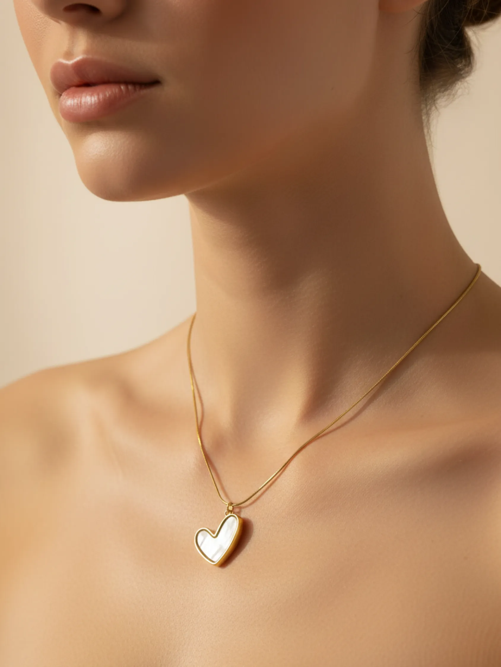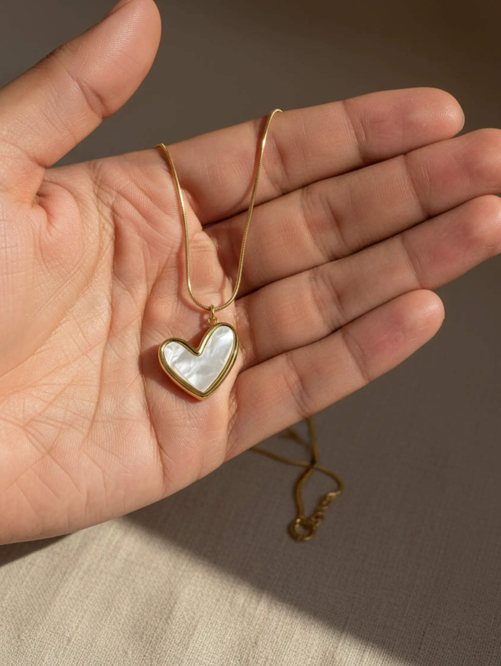 A delicate ivory heart pendant in gold tone — romantic, minimal, and timeless.